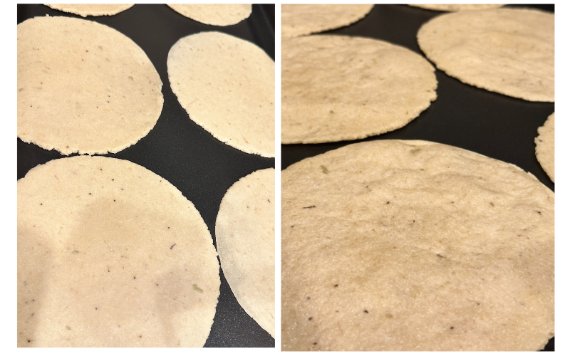 • Stack them on a plate to cool. These are easy to freeze. We usually eat them 4 at a time, so I put parchment between every 4 tortillas and freeze them in a zip lock. Put them on a small plate to defrost. Bake or microwave to reheat. Hope you love them!!! They are my FAVORITE.